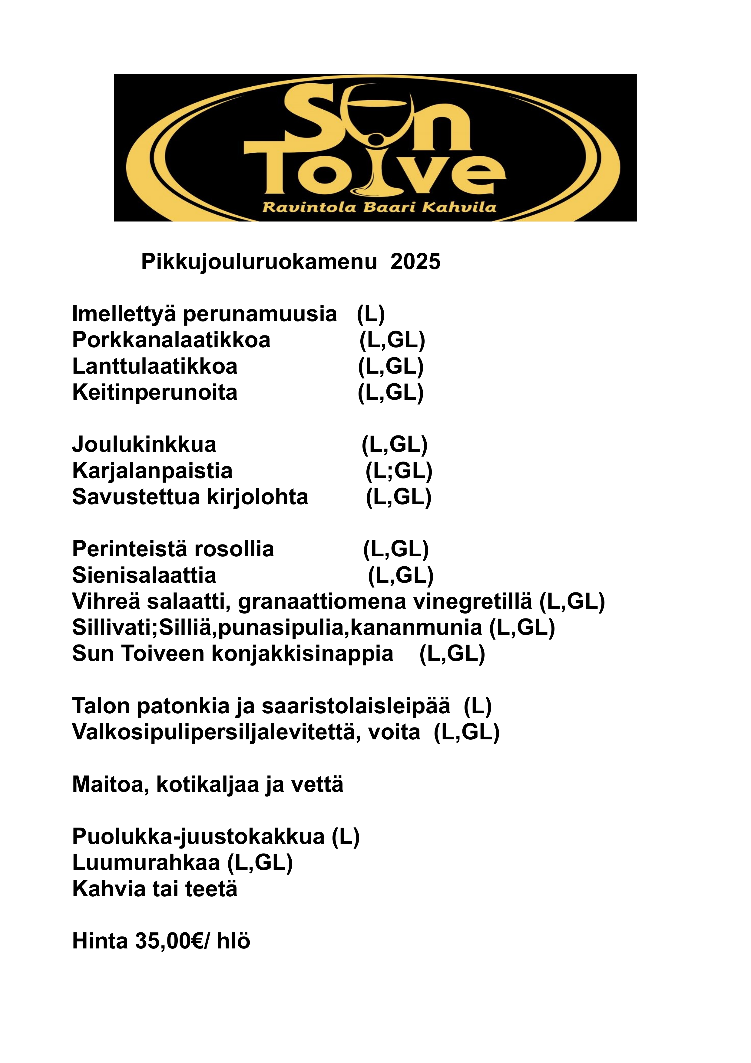 Varaa omalle väellesi pikkujoulut numerosta 040-484 7738